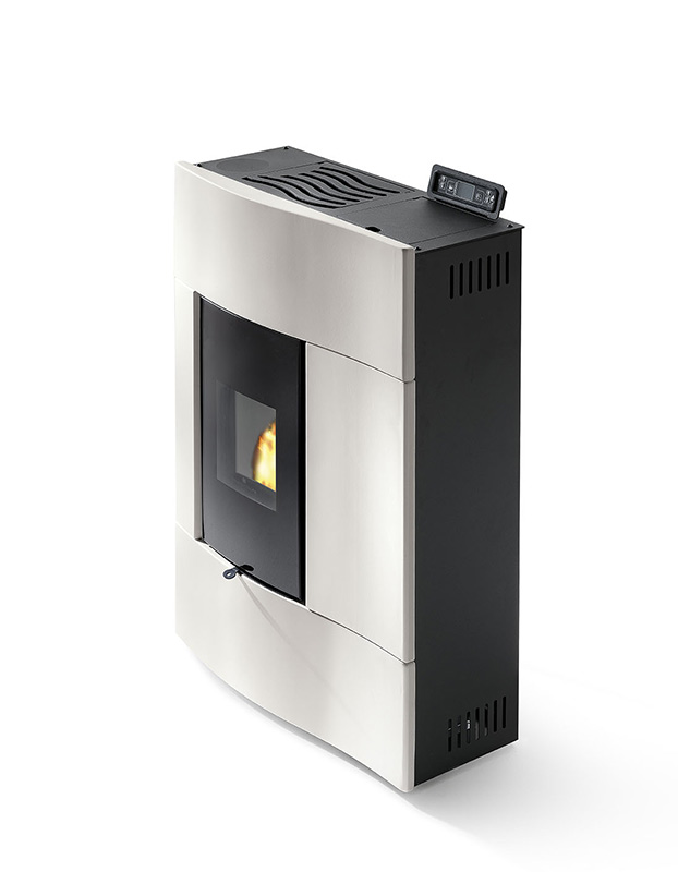 Stufa a pellet dal design giovane e compatto, ideale per ambienti moderni. Rivestita in ceramica disponibile nei colori: bianco semilucido, avorio, nero opaco, nero lucido e rosso. L’uscita dei fumi può essere posta sul retro della stufa.